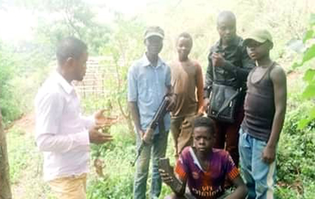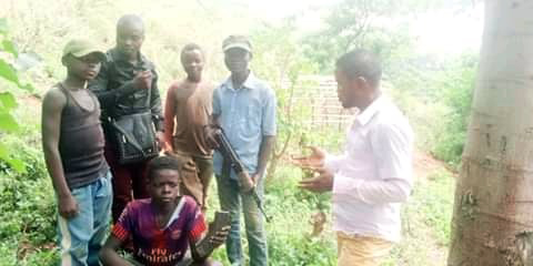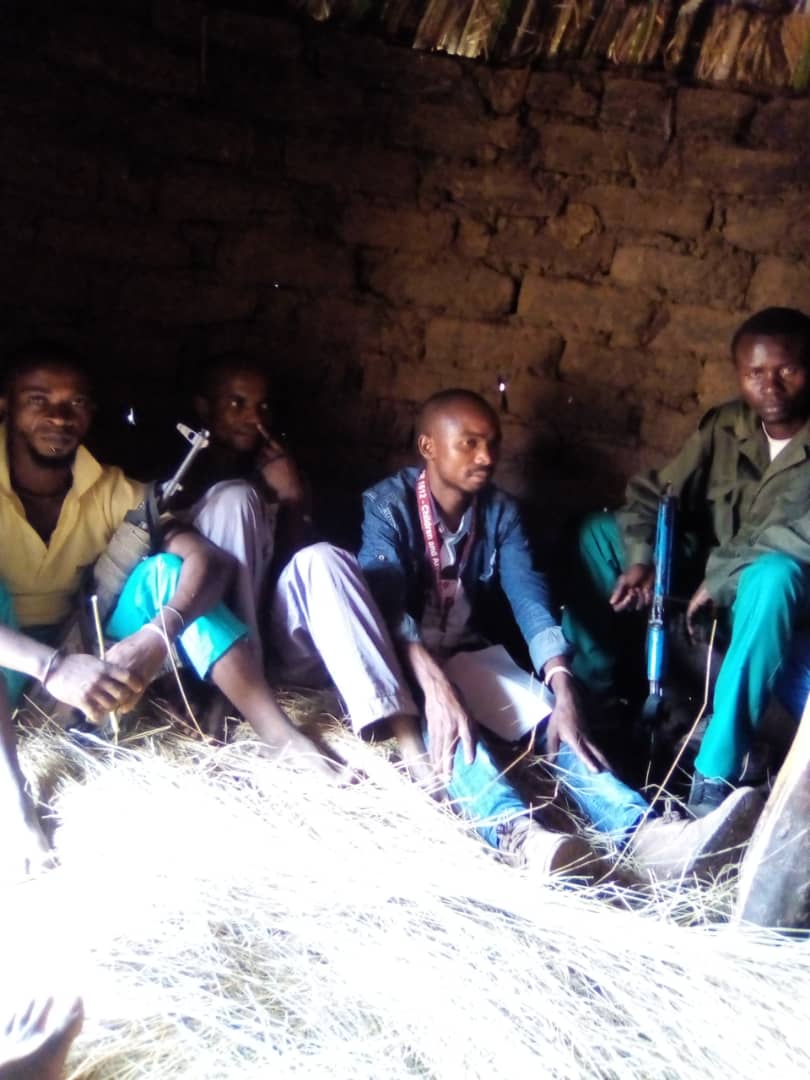 Le regretté coordinateur de l'AJDC RDCongo, Thierry BASIMISE SHABANI en contact avec les chefs de local défense pour négocier la sortie des enfants utilisés